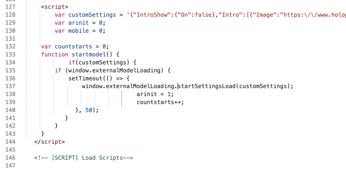 Also: if this code runs before you scene has been setup and components become active which it looks like it easily could do then it would explain the missing model. In that case you should run your code from a needle engine lifecycle hook to make sure the scene is read (e.g. onStart((context) =>{ ... }) which runs at the beginning of the first frame after you call onStart. You can then remove the 50ms setTimeout call completely and be sure the 3d context is ready).
